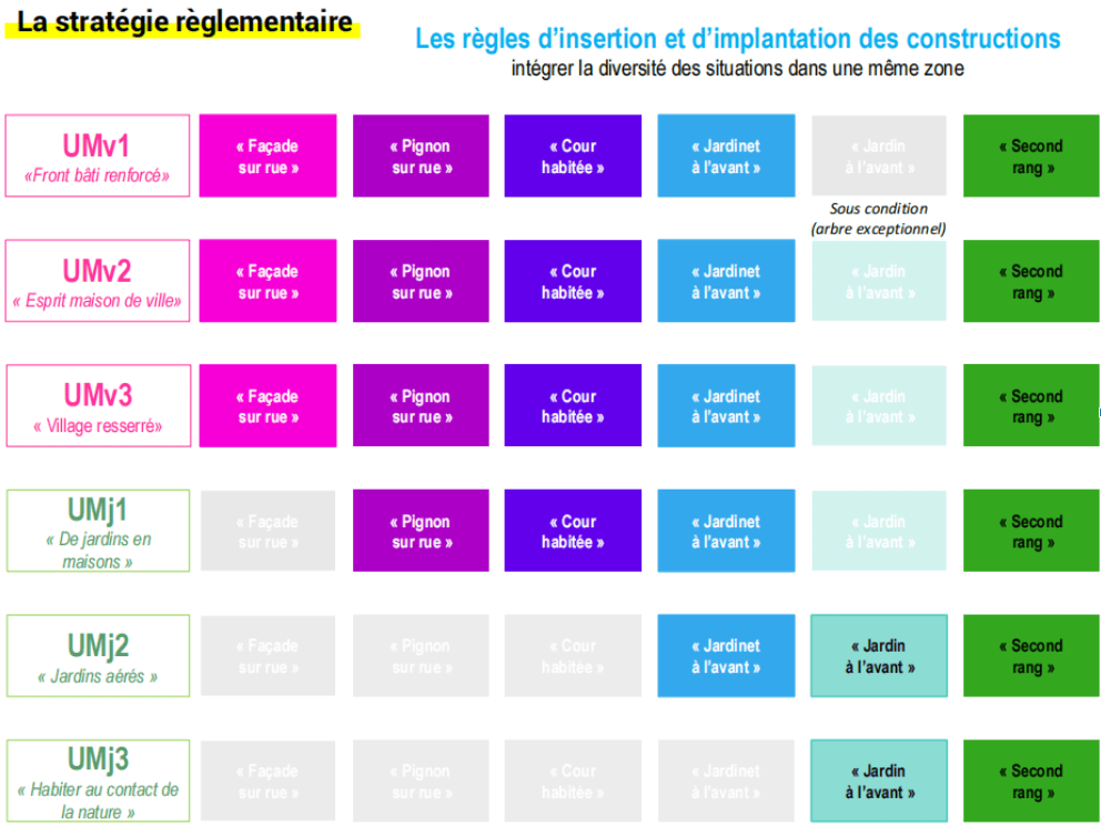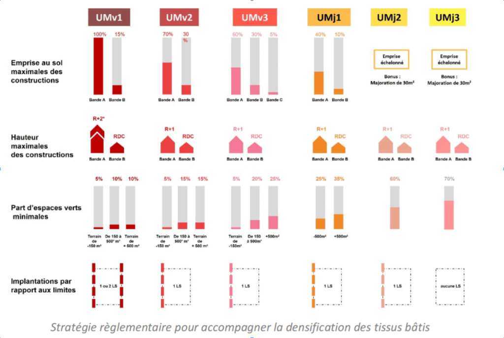 Le Plan Local d’Urbanisme (PLU) adopte une stratégie différenciée selon les secteurs, pour permettre une densification raisonnée des tissus bâtis existants, une cohérence architecturale avec les typologies locales, une meilleure efficacité des équipements (voirie, assainissement, écoles…).